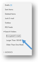 - selecting your Encrypted Email custom search folder or an encrypted email