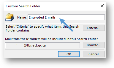 - In the Custom Search Folder window, type in a name for your folder. We suggest “Encrypted Emails.”