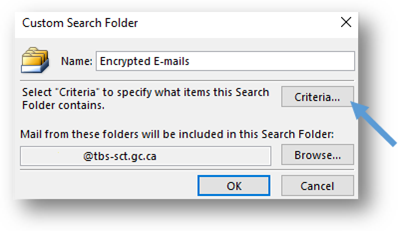 - Configure the criteria for the search. Select the Criteria button and the Search Folder Criteria window will pop up.