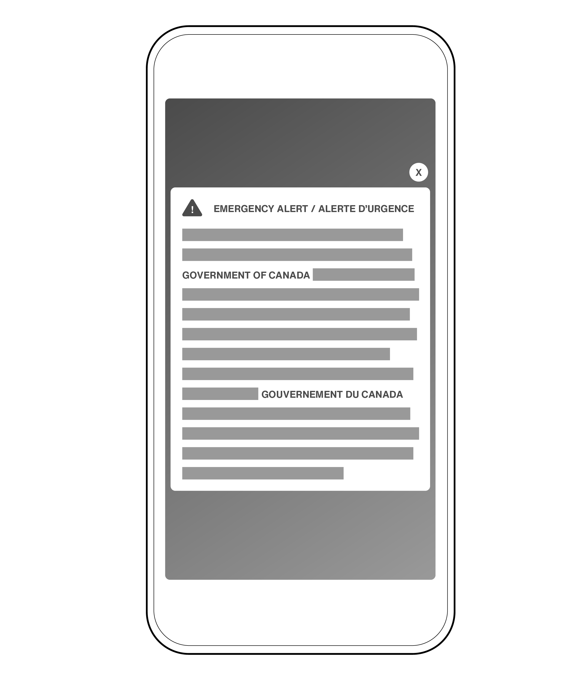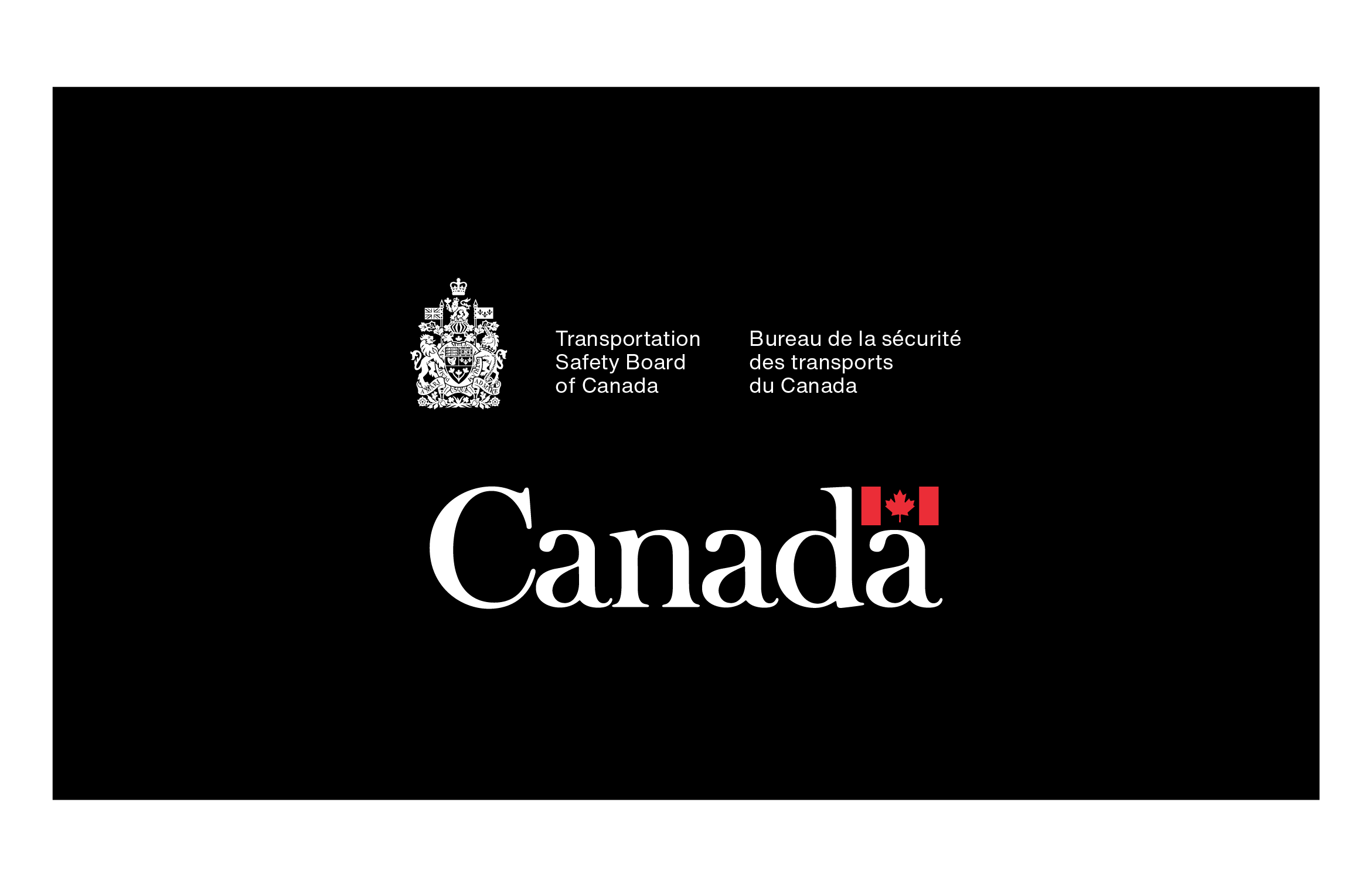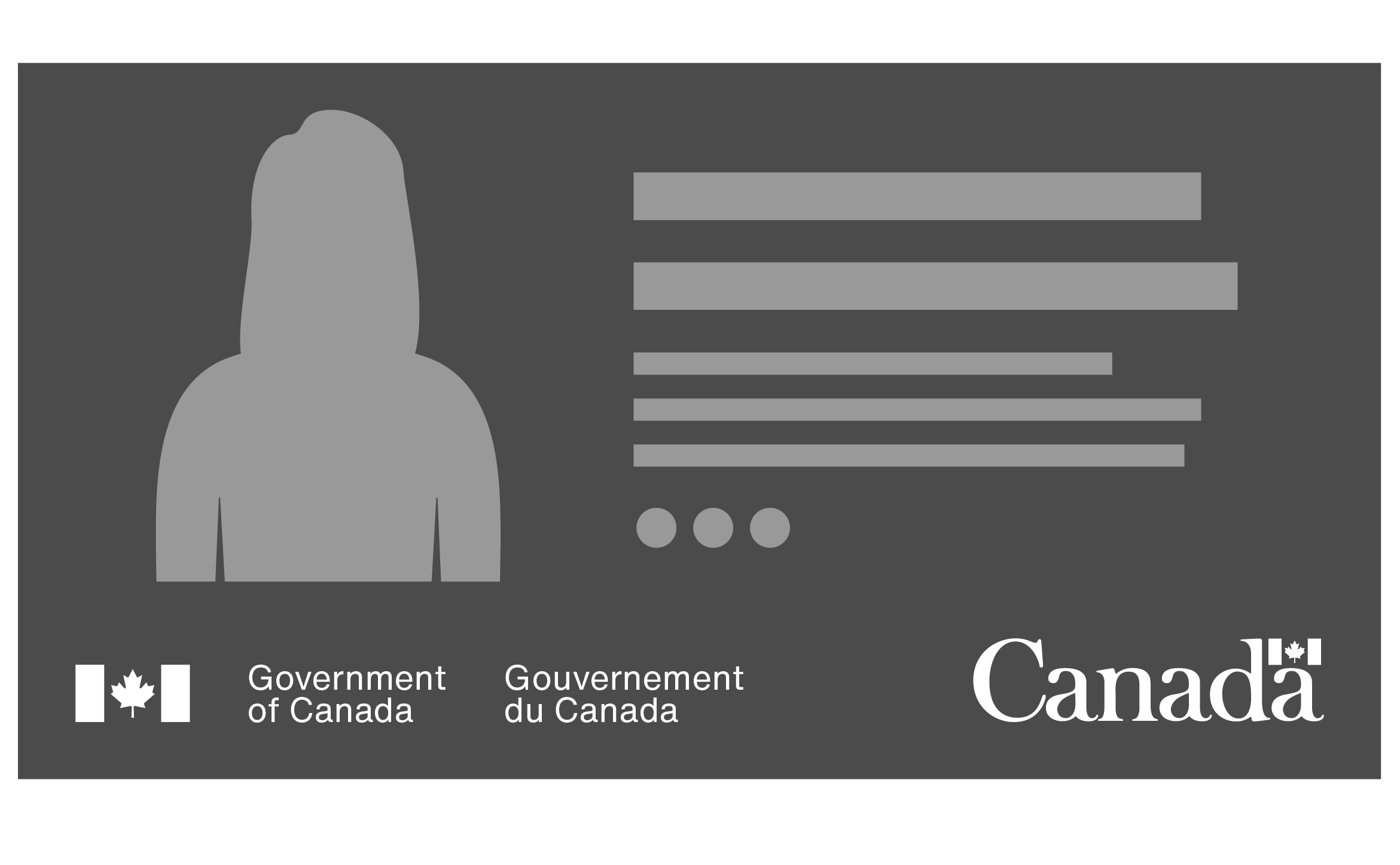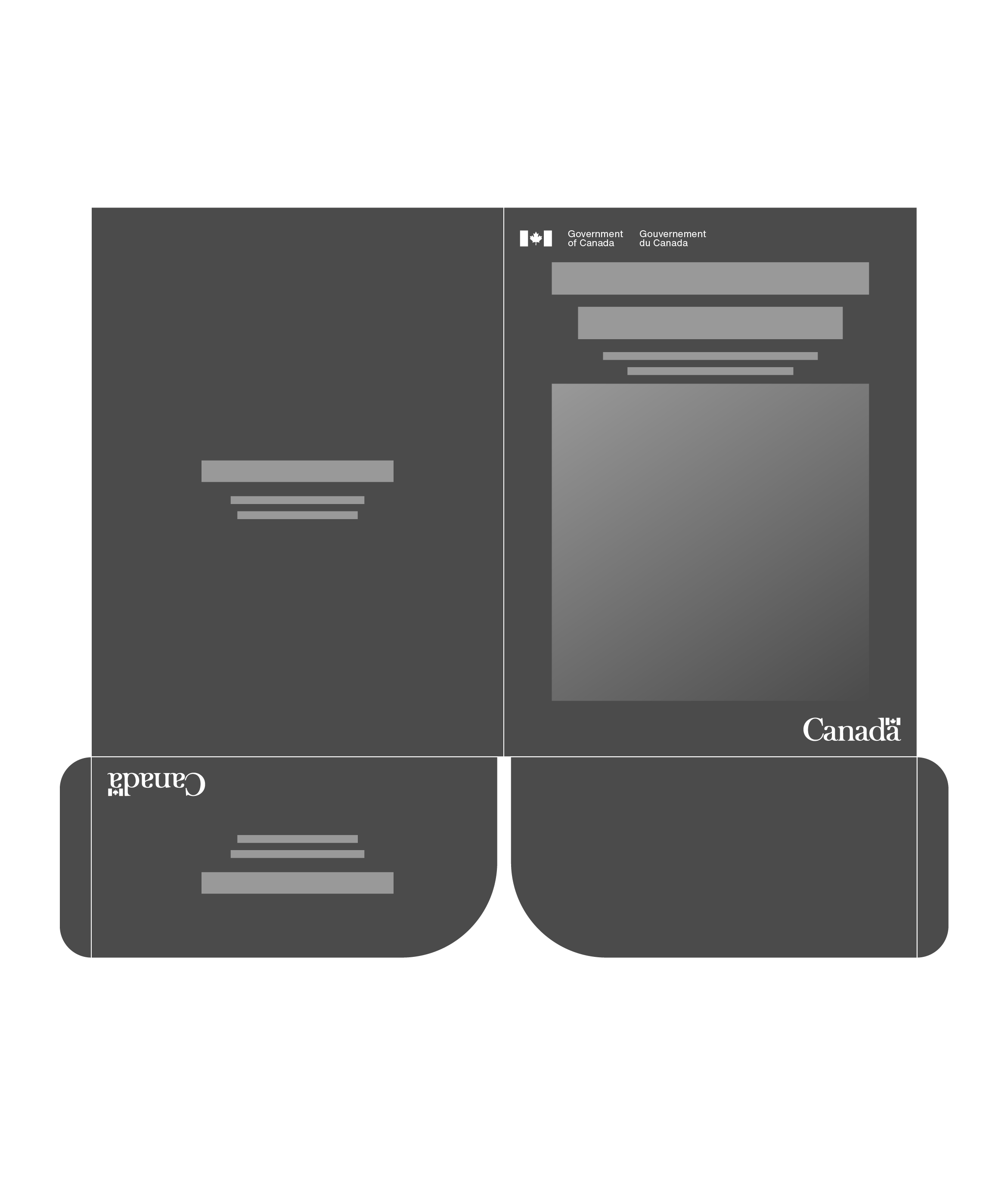 Example of an animated product. Because the product contains a government message, the Government of Canada signature and the Canada wordmark are applied. The signature and the Canada wordmark are on the same baseline at the bottom of the product. The signature is in the left corner, and the wordmark is in the right corner. Solid white versions of the symbols are used to provide sufficient contrast with the black background.