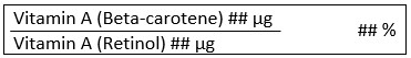 (b) When beta-carotene is the only form of vitamin A present in the supplemented food, the percent DV is determined based on the amount of vitamin A (Beta-carotene) in micrograms of RAE, calculated on the basis of the relationship set out in paragraph D.01.003 (1)(a) |