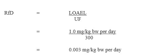 RfD = chronic oral reference dose of 0.003 mg/kg bw per day as derived above.