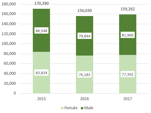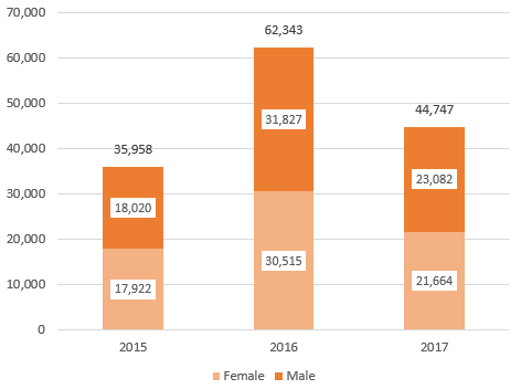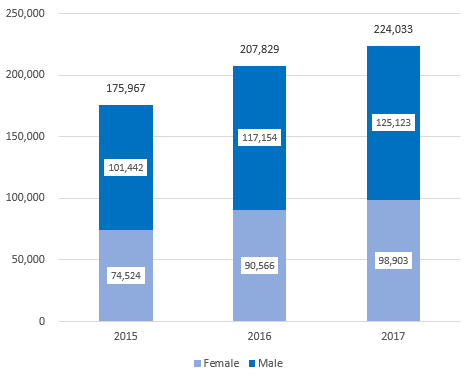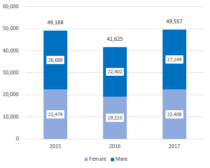 | 2017 | 22,408 | 27,149 | 49,557 |