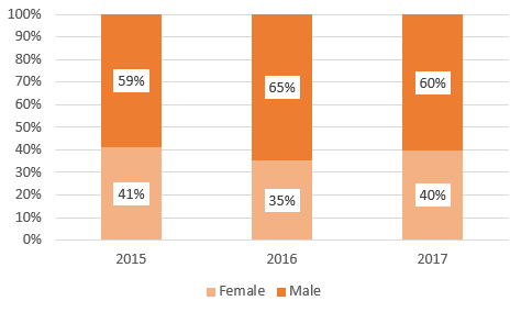 Both the temporary in-home caregiver and agricultural occupations continue to reflect gendered stereotypes of care and manual labour. In 2017, women accounted for the majority of in-home caregiver temporary work permits (95%), whereas men accounted for only 5%. The reverse is true in the case of agricultural worker temporary permits where women accounted for only 5% of permits compared to 95% for men.