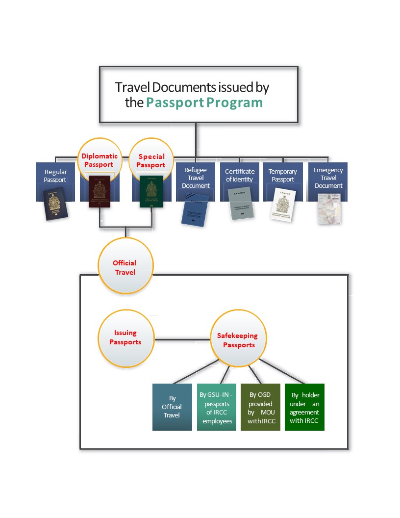 - The Official Travel unit in the Centralized Network is responsible for the safekeeping of all official passports. There are three exceptions to this: official passports for IRCC employees which are safe kept by the Geographic Support Unit in the Department’s International Network (GSU-IN); official passports for employees of other government departments that have safekeeping arrangements under a Memorandum of Understanding; and official passports for certain individuals who have been allowed to permanently keep the official passports upon signing the Agreement between the Passport Program, IRCC and Global Affairs Canada regarding continued custody of Diplomatic and Special passports.