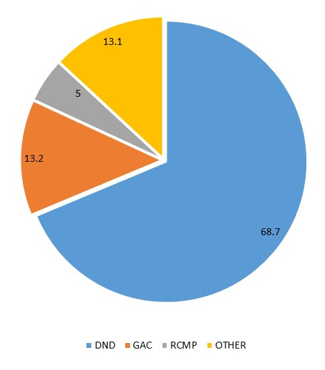 - In 2017-2018, the Passport Program received approximately 4.95 million travel document applications. As one of the seven service channels within the Passport Program, the Official Travel operations received 0.3 percent of the applications. As of December 2018, there was a total of 62,325 valid official passports in circulation, which was made up of 11,035 Diplomatic passports and 51,290 Special passportsFootnote i. As of December 2018, personnel from the Department of National Defence, Global Affairs Canada, and the Royal Canadian Mounted Police have been issued the largest volume of Official Passports. (See Figure 2)