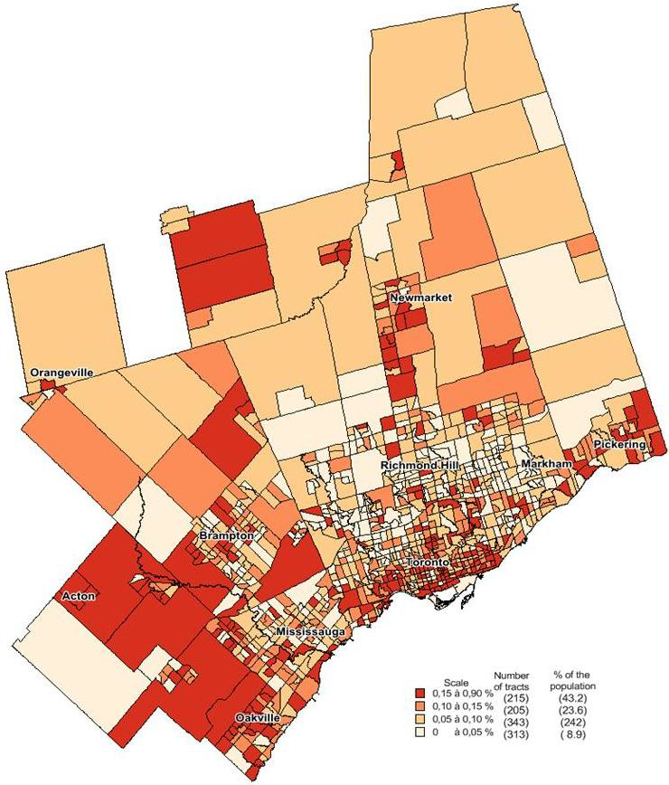 As seen in the earlier version of this study, the majority—nearly 70%—of francophone immigrants outside Quebec are concentrated in Ontario. Two-thirds of French-speaking immigrants live in three urban centres: Toronto, Ottawa and Vancouver.