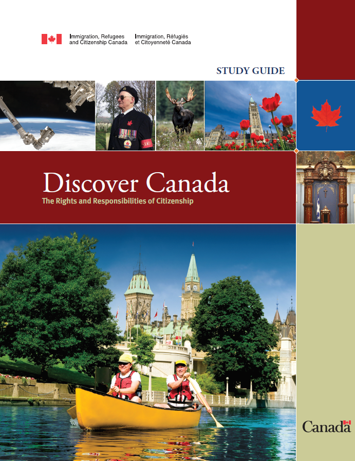 Use our official study guide, Discover Canada: The Rights and Responsibilities of Citizenship, to study for your test. You can start studying for the test at any time. We base all the test questions on information found in the study guide.