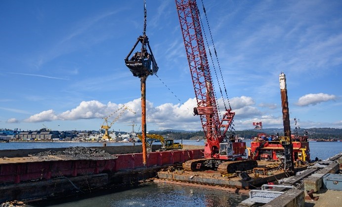 The F/G Jetty Optimization Project dredged and disposed of contaminated sediments and placed clean fill materials on the seabed to improve the area between F Jetty and G Jetty and CFB Esquimalt-Colwood. At the same time, the Colwood South Remediation Project also undertook dredging and disposal of contaminated sediments from the area adjacent to D Jetty. The remediation work included site preparation and dredging of contaminated sediments and debris, processing of removed sediments, and water treatment.