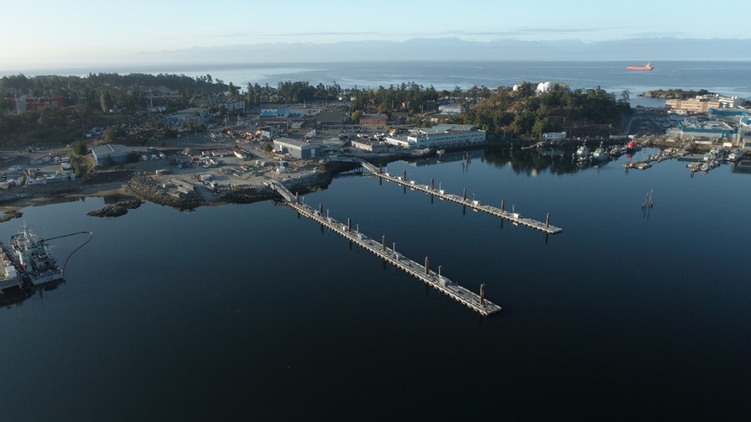 The Small Boat Floats (SBF) Project was conducted to provide berthing facilities and support infrastructure for Royal Canadian Navy support vessels at CFB Esquimalt. The new SBF provides berths with enough water depth to moor and transport vessels during low water conditions and includes access improvements to support efficient shore operations. It largely replaces the function of the formerly-adjacent ML Floats which were near the end of their serviceable life. Remediation of contaminated sediments in the project area was completed during the Constance Cove Remediation Project prior to construction.