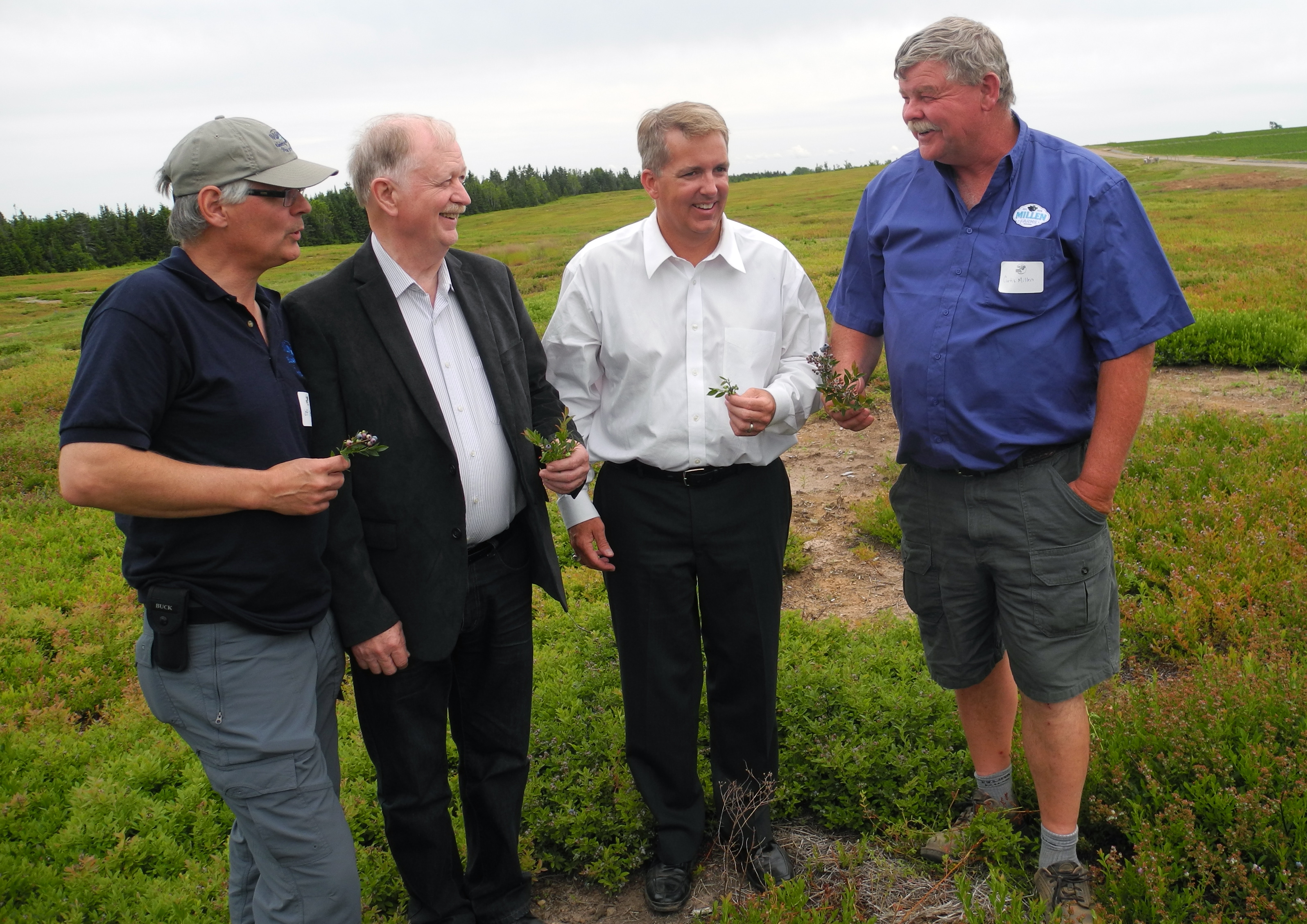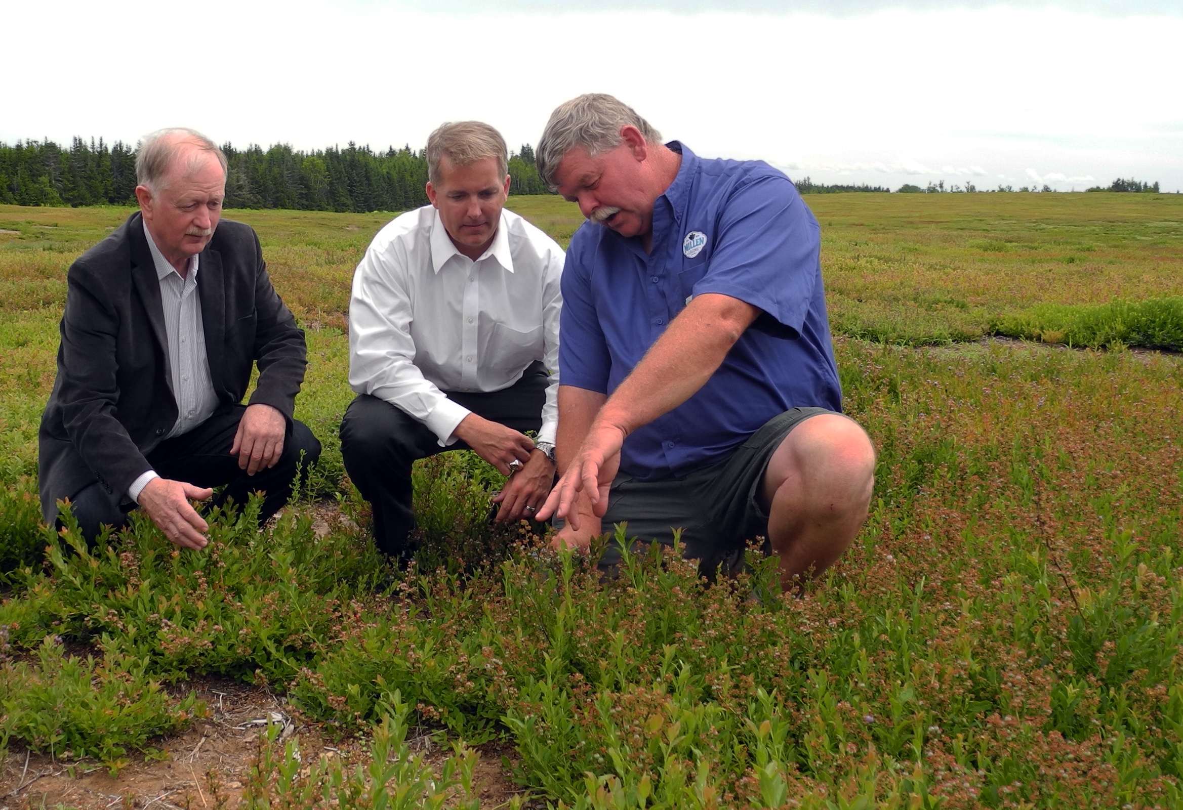 Agriculture Minister Keith Colwell and Member of Parliament Scott Armstrong (Cumberland—Colchester—Musquodoboit Valley), on behalf of Agriculture Minister Gerry Ritz, announced $1.08 million over three years for the Lowbush Blueberry Development program today, July 18, during the Wild Blueberry Producers Association’s annual field day at Millen Farms in Great Village, Colchester Co. Nova Scotia.