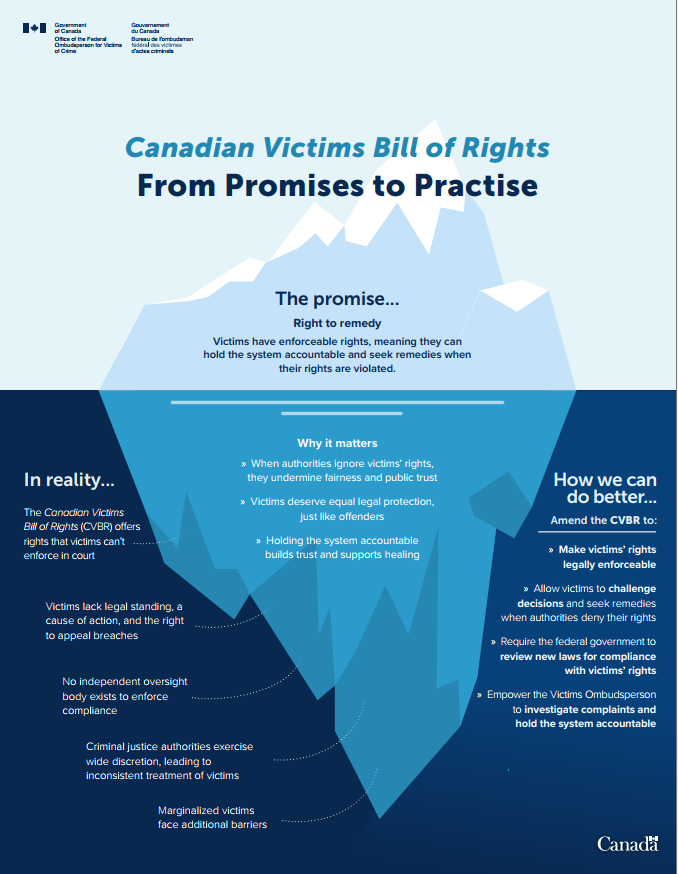 - The Canadian Victims Bill of Rights (CVBR) offers rights victims can’t enforce in court