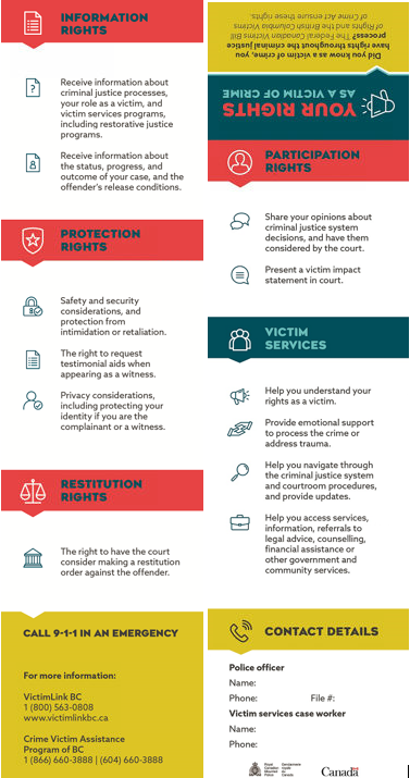 - Example of existing Victims' Rights flip card for police officers by British Columbia RCMP (2019)