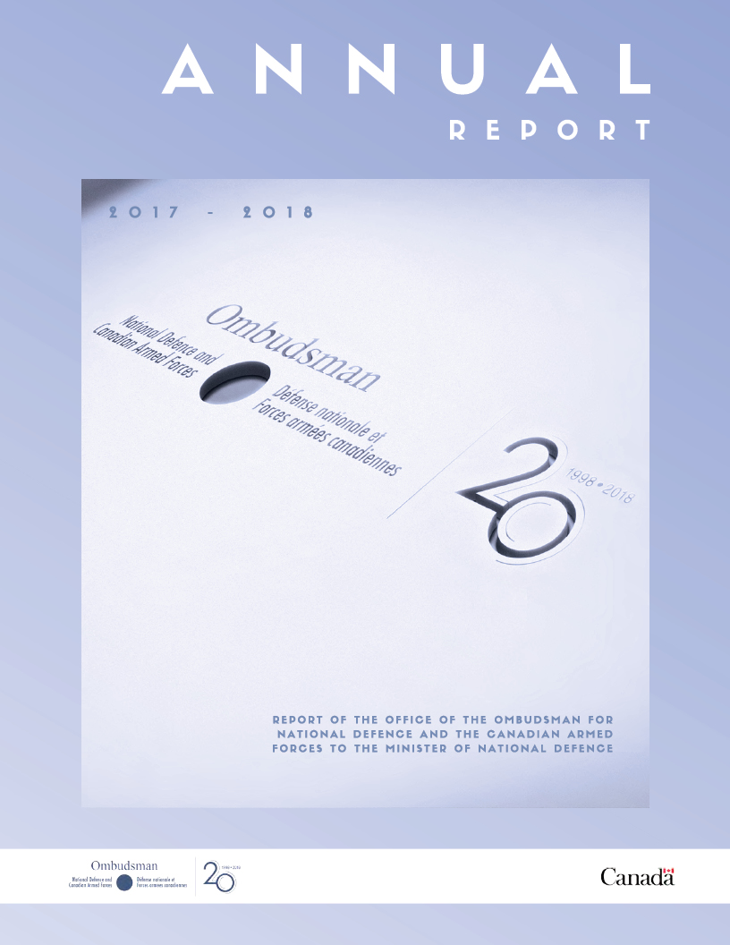 2018 marks the 20th year since the Ombudsman’s Office opened its doors and its phone lines to assist members of the Defence community. I am incredibly proud of the work that the current and former members of this office have accomplished over that time. We have a lot planned for our anniversary year, so please visit our website, Facebook, Instagram, and Twitter accounts for more details.