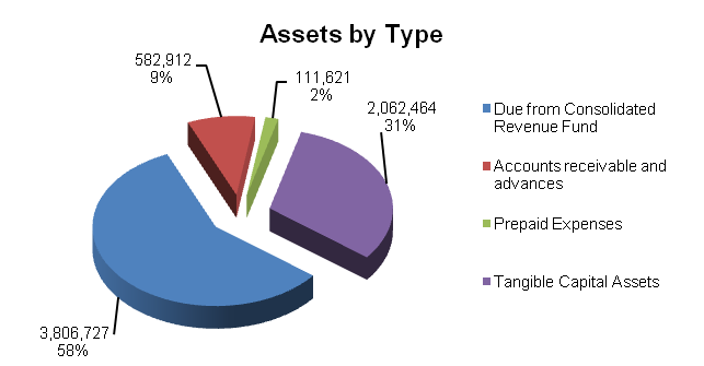 The balance of assets is comprised of tangible capital assets (31%), net accounts receivable and advances (9%) and prepaid expenses (2%).