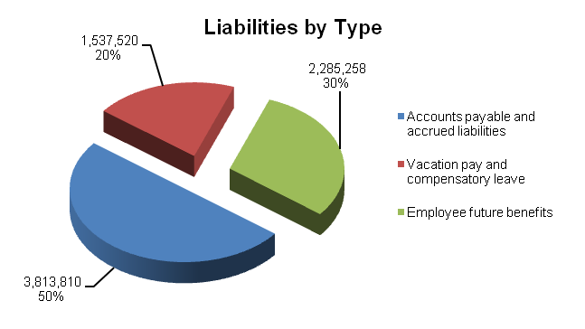 The PBC's liabilities consist mainly of accounts payable and accrued liabilities (50%), vacation pay and compensatory leave (20%) and employee future benefits (30%).