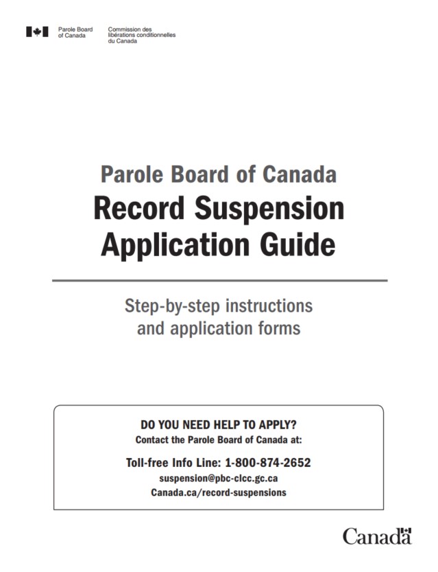 - Credit card (use the NEW Record Suspension Application Processing Fee Form);