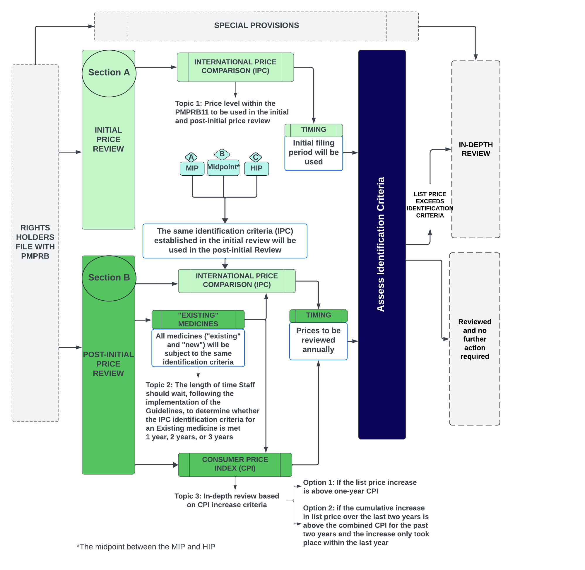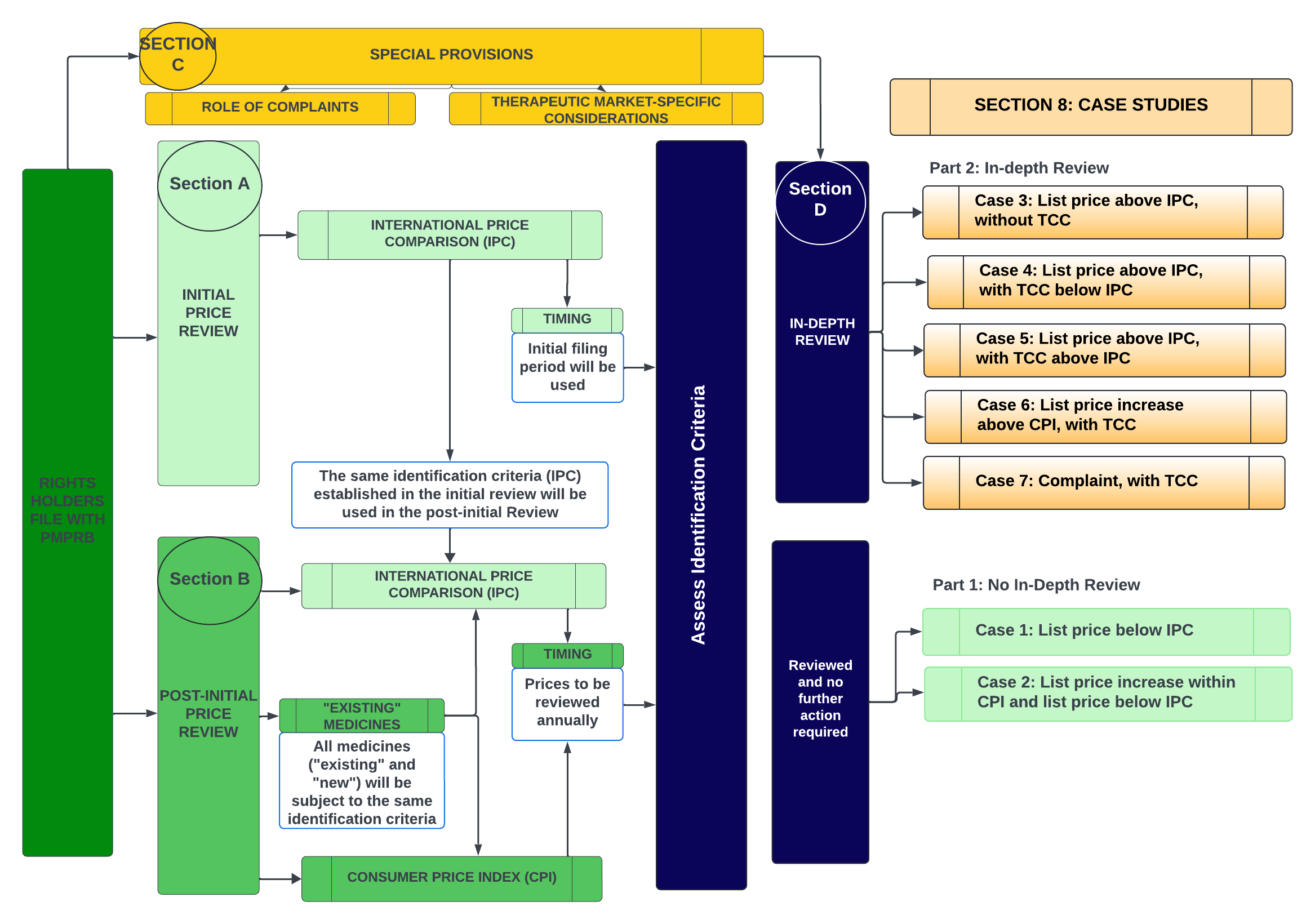The basic structure of the price review process envisioned by the Board can be described through four main parts (“Sections”): Section A: Initial Price Review; Section B: Post-Initial Price Review; Section C: Special Provisions; and Section D: In-Depth Review.