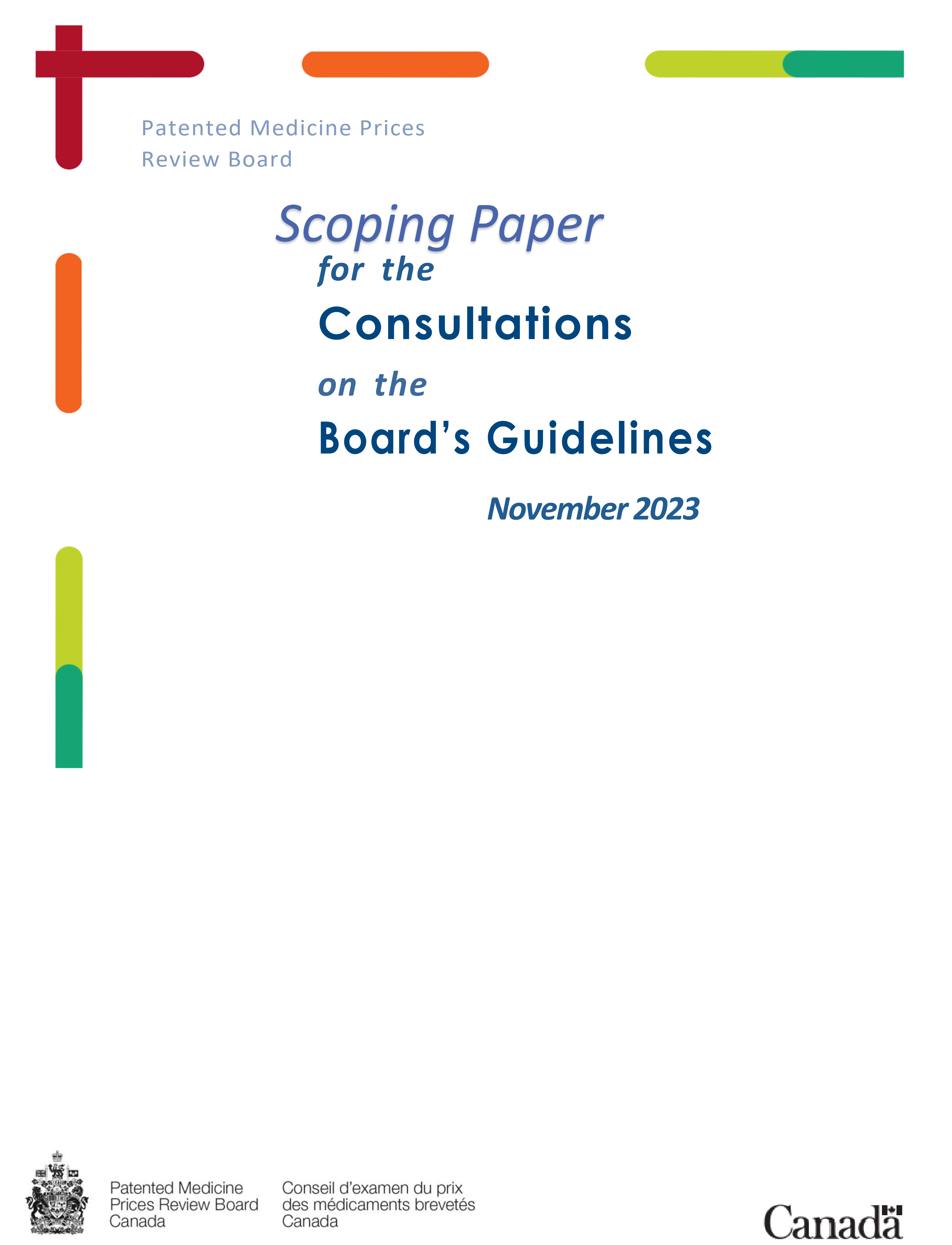 This Scoping Paper is intended to serve as a catalyst for a more informed, focused, and productive consultation process in developing new Guidelines by outlining themes and specific questions the PMPRB is seeking feedback on. This paper is for discussion purposes only, and it is not intended as a definitive articulation of the PMPRB’s position on these issues.