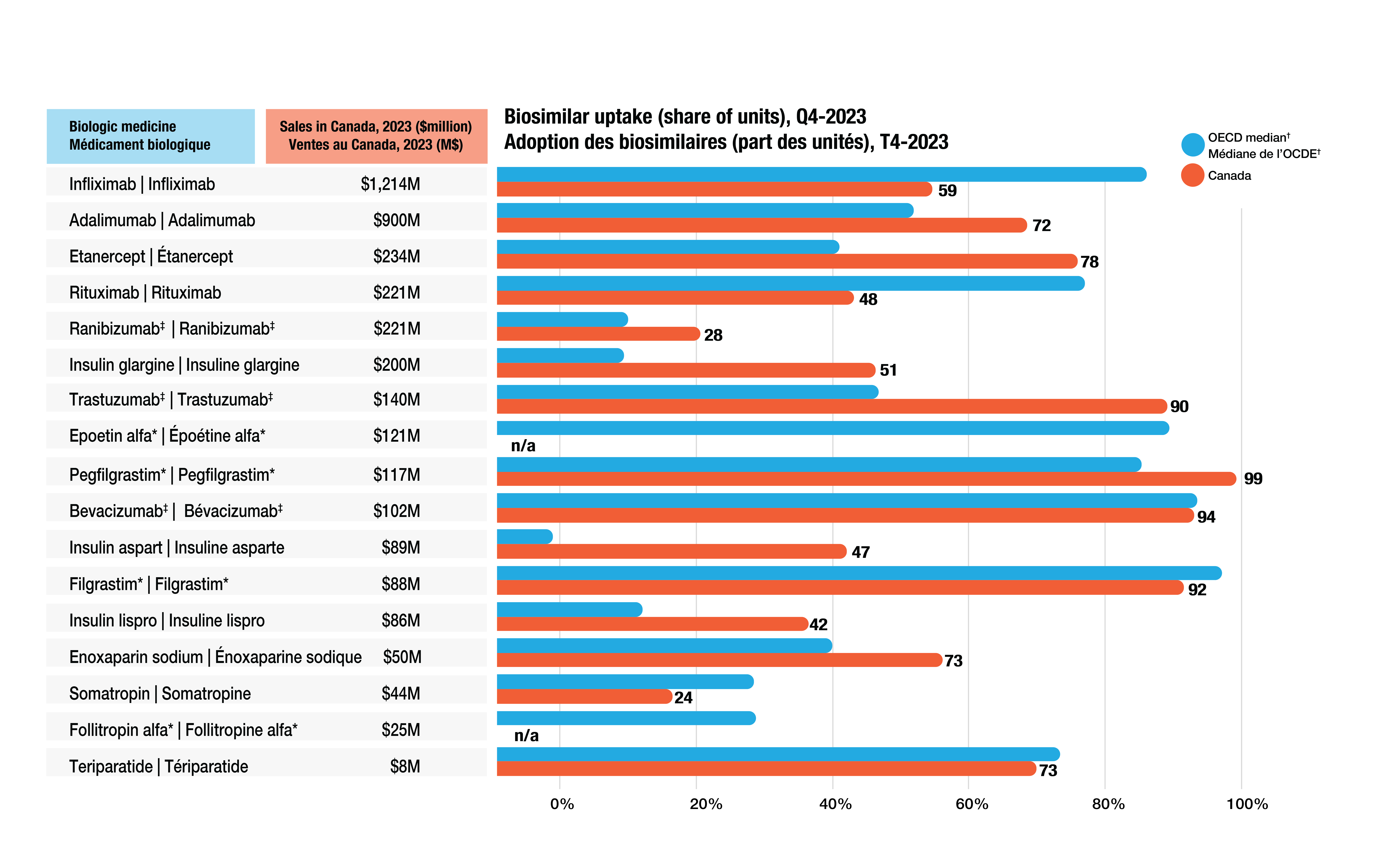 Potential savings from biosimilars are a topic of international interest with particular relevance for Canada. Given its high-use and high-price market for biologics, increased biosimilar adoption offers a significant opportunity for cost savings for Canadian payers.