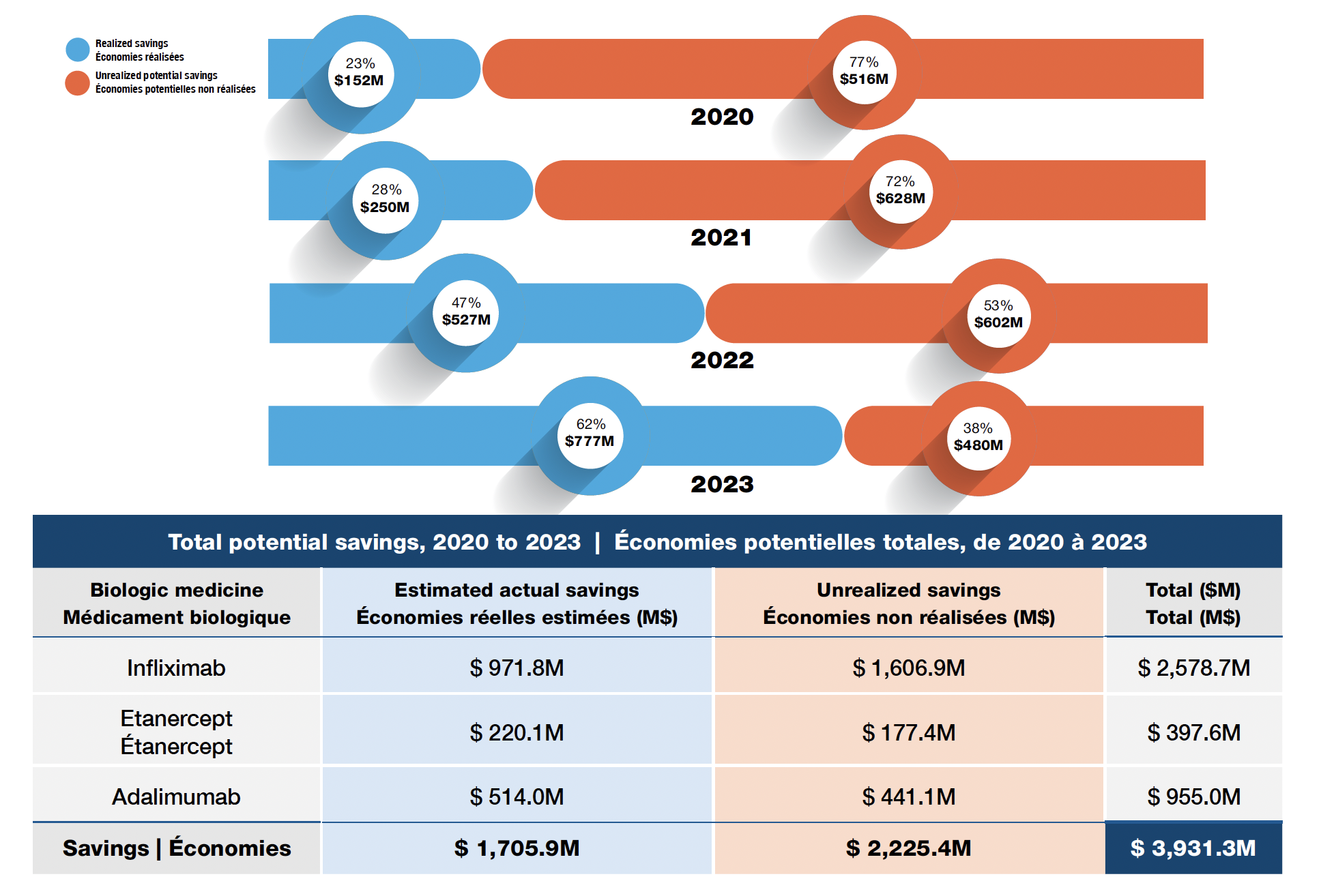 Figure 5. Realized and potential savings from biosimilar use in Canada, 2020 to 2023