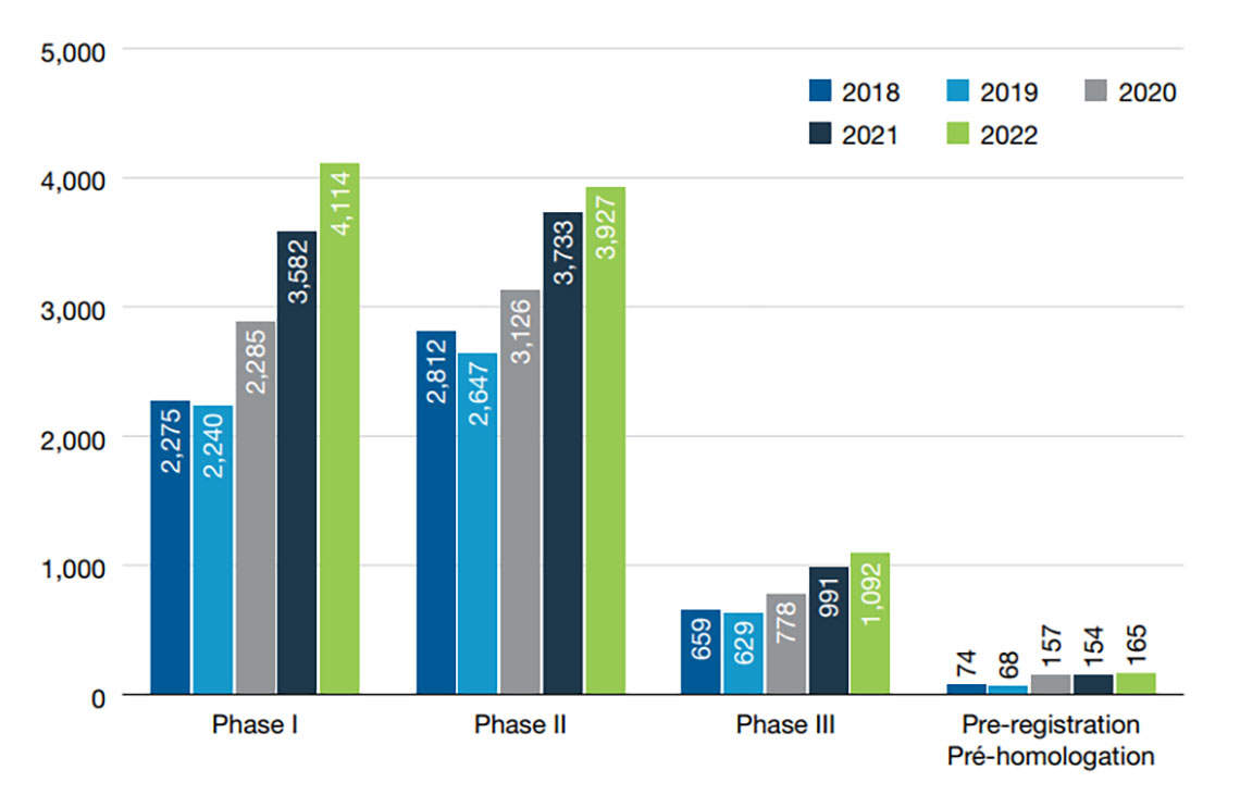 Figure 1: Number of new medicines in each phase of clinical evaluation, 2018-2022