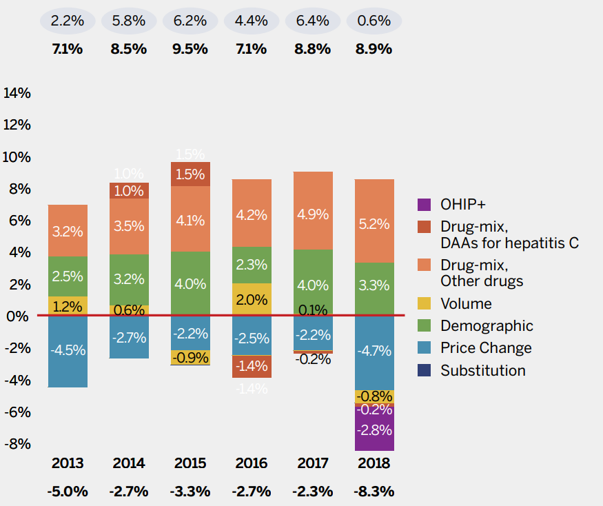 - 4.3% for Innovative Medicines Canada members, a decrease from 4.6% in 2017.