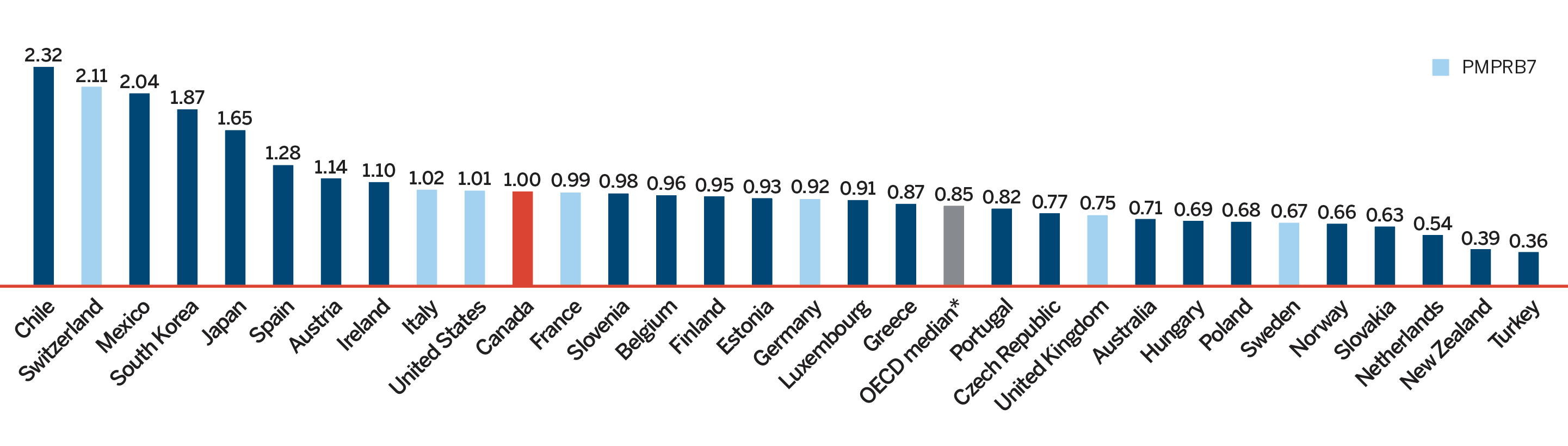 - Canadian prices were fourth highest among the seven PMPRB comparator countries, lower than prices in Switzerland, Germany and the US.