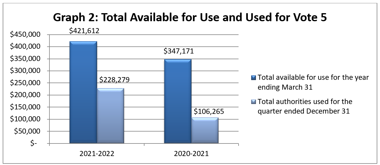 Text version: Total Available for Use and Used for Vote 5 (in thousands of dollars)