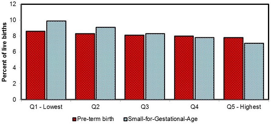 National data on low birth weight by income are not available. Data by income are available for pre-term birth and small-for-gestational-age. Pre-term birth and being small for gestational age are conditions associated with low birth weight.Footnote 2,Footnote 3