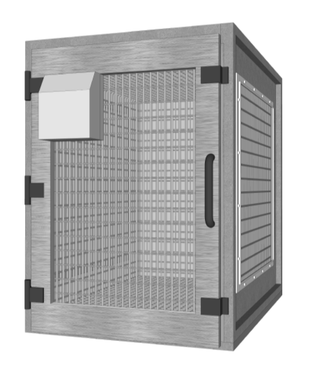 Cabinet used in conjunction with building HVAC system. HEPA-filtered exhaust air is vented to the outside.
