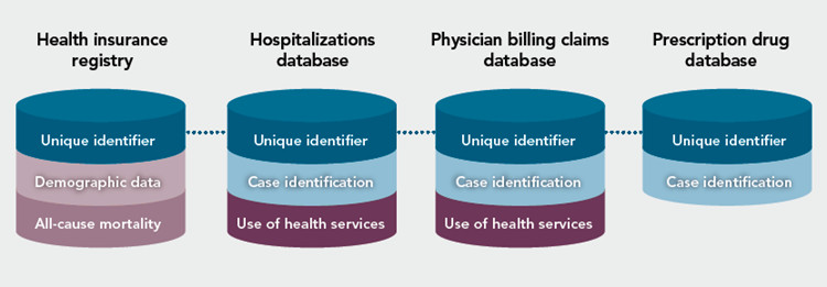To identify people with chronic diseases, provincial and territorial health insurance registry records are linked using a unique personal identifier to the corresponding physician billing claims, hospital discharge abstract records and prescription drug records.