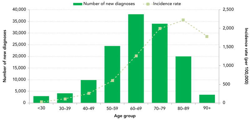 | Age Group | Number of new diagnoses | Incidence |