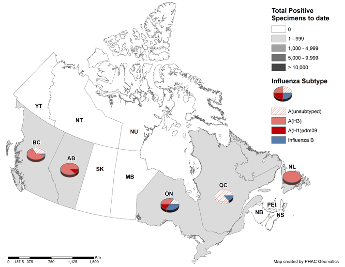 - Overall, there is low influenza activity in Canada; however, influenza activity and detections are increasing, especially in BC.