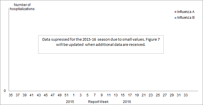 Note: The number of hospitalizations reported through IMPACT represents a subset of all influenza-associated paediatric hospitalizations in Canada. Delays in the reporting of data may cause data to change retrospectively.