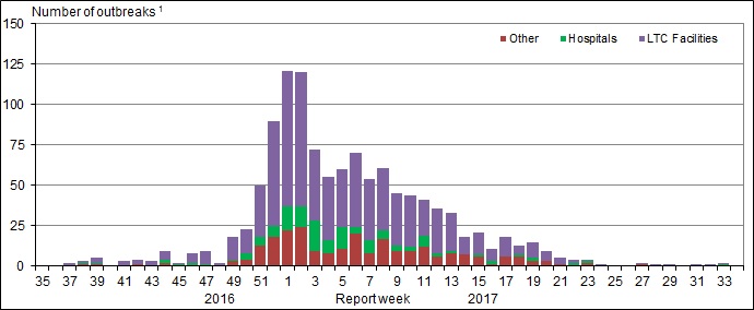 Note that reporting of outbreaks of influenza/ILI from different types of facilities differs between jurisdictions.