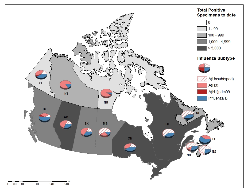 During the 2017-18 influenza season, the National Microbiology Laboratory (NML) has characterized 1,443 influenza viruses [810 A(H3N2), 72 A(H1N1)pdm09 and 561 B viruses] that were received from Canadian laboratories.