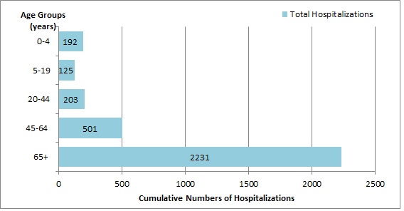 - To date this season, the majority of laboratory-confirmed cases, hospitalizations and deaths with influenza have been among adults 65 years of age and older.