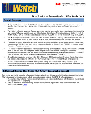 - During the influenza season, the FluWatch report is based on weekly data. This report is a summary of all of the data received for the 2018-19 influenza season and a comparison of these data to the previous five seasons.