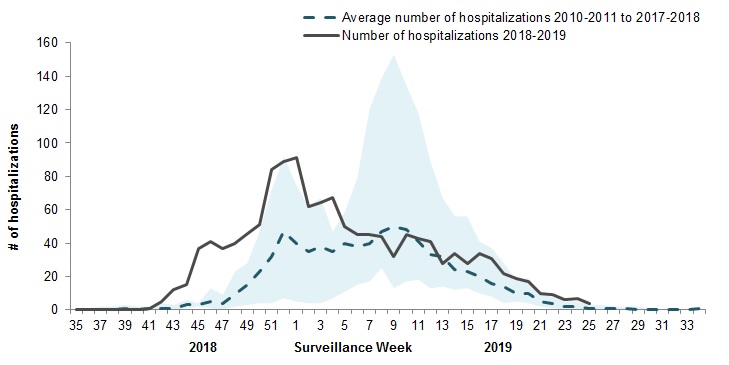 Surveillance of laboratory-confirmed influenza-associated adult (≥16 years of age) hospitalizations by the Canadian Immunization Research Network (CIRN) Serious Outcomes Surveillance (SOS) network began on November 1st and ended May 30th for the 2018-19 season.