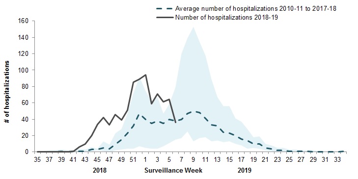 Surveillance of laboratory-confirmed influenza-associated adult (≥16 years of age) hospitalizations by the Canadian Immunization Research Network (CIRN) Serious Outcomes Surveillance (SOS) network began on November 1st for the 2018-19 season.
