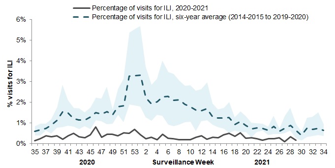 - Despite continued monitoring for influenza across Canada, there continues to be no evidence of community circulation of influenza. Given the time of year, influenza is expected to remain at interseasonal levels for the remainder of the 2020-2021 seasonal influenza surveillance period.