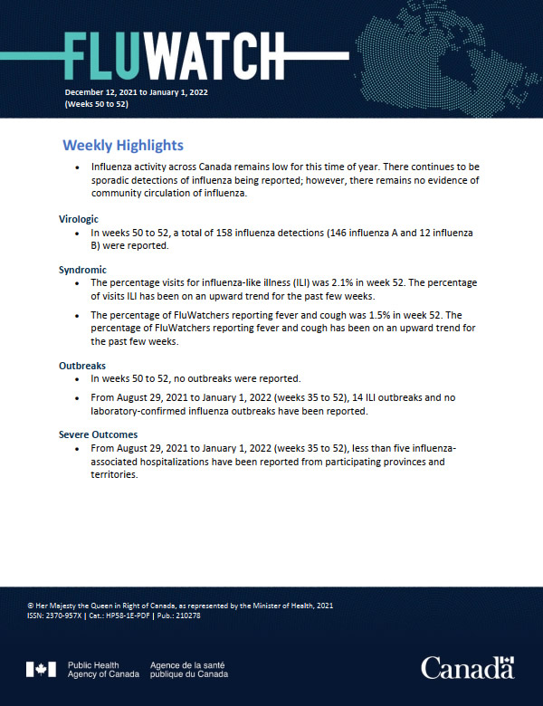 FluWatch report: December 12, 2021 to January 1, 2022 (weeks 50 to 52)
