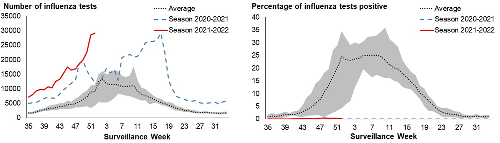 - From August 29, 2021 to January 1, 2022 (weeks 35 to 52), less than five influenza-associated hospitalizations have been reported from participating provinces and territories.