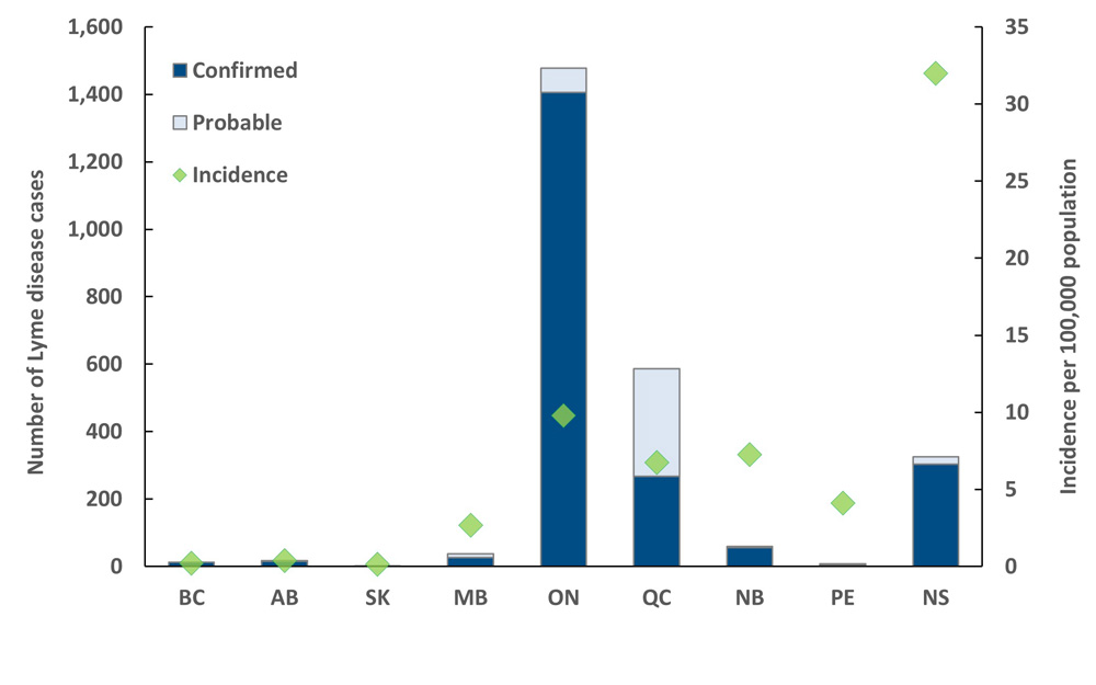 The Public Health Agency of Canada acknowledges the provincial and territorial partners for their participation in the Canadian Notifiable Disease Surveillance System (CNDSS) and Lyme Disease Enhanced Surveillance (LDES) system.