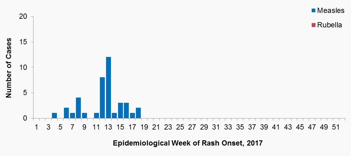 - In Canada, no new cases of measles were reported in week 20, 2017.