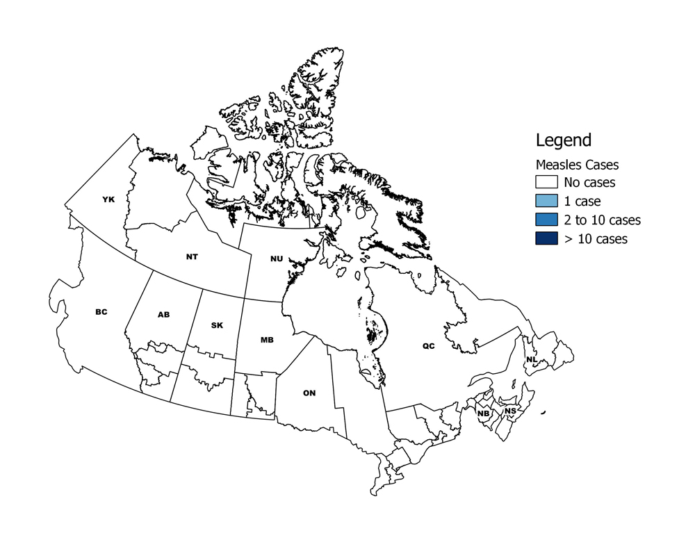 There is currently no active Footnote * cases of measles reported in Canada.