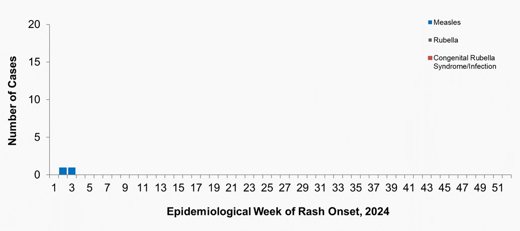 - 2 cases of measles and no cases of rubella have been reported in Canada in 2024.