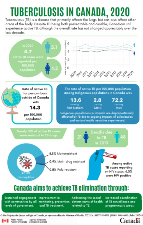 Indigenous populations in Canada are disproportionally affected by TB due to ongoing impacts of colonization and various health inequities experienced.