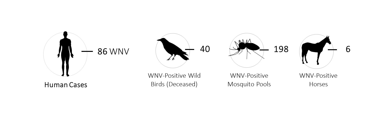 Between January 1 and October 24, 2020, eighty-six human cases of West Nile virus in Canada have been reported to the Public Health Agency of Canada (PHAC). Forty WNV-positive birds, and 198 WNV-positive mosquito pools have also been reported.